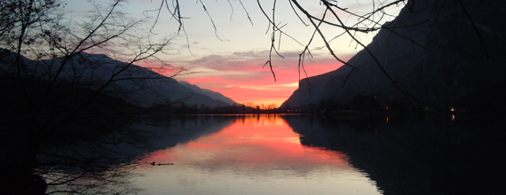 Il 21 dicembre del 2014 stavamo rientrando da un week end lungo passato a Comano Terme in Trentino. Durante il viaggio, ci fermammo a mangiare in un buon agriturismo dove acquistammo le famose patate viola e il succo di mele di loro produzione, per poi riprendere la strada verso casa. Ad un certo punto ci si presentò di fronte un affascinante lago in cui si immergeva un tramonto meraviglioso.