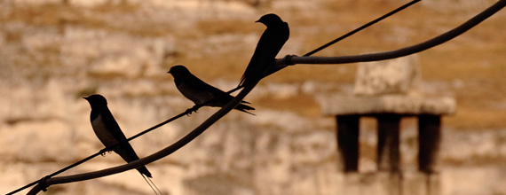 Il 14 agosto del 2007 ci trovavamo in gita a Matera. Il giorno si stava ormai volgendo al termine e prima di ripartire decidemmo di prenderci una piccola pausa per ammirare i "sassi" illuminati dalle luci morbide del tramonto. Ci sedemmo così su un muretto quando all’improvviso arrivarono tre piccole rondini che si fermarono proprio di fronte a noi, sul cavo dell’elettricità, formando una posa armoniosa in perfetto contrasto con il paesaggio.